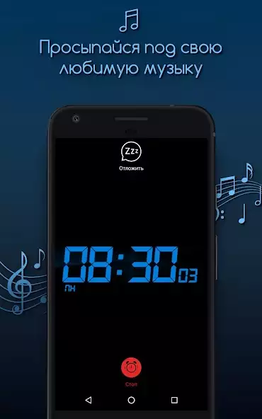 • Работа в фоновом режиме: будильник сработает, даже если приложение неактивно;