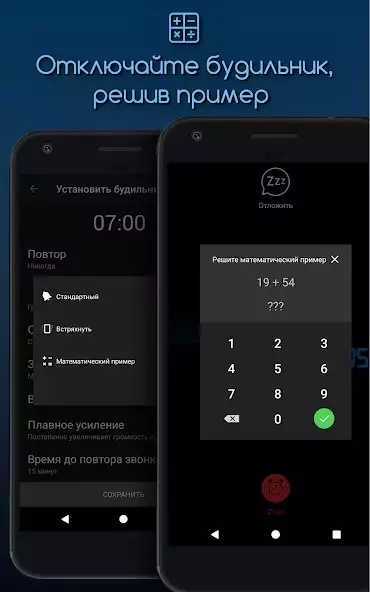 • Новые способы отключения будильника: "математический пример", чтобы разбудить мозг, и "встряхивание" - утренняя гимнастика для вашего тела!