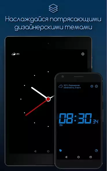 • Будильник: просыпайтесь под любимую песню и украшайте экран стильными часами-виджетами;