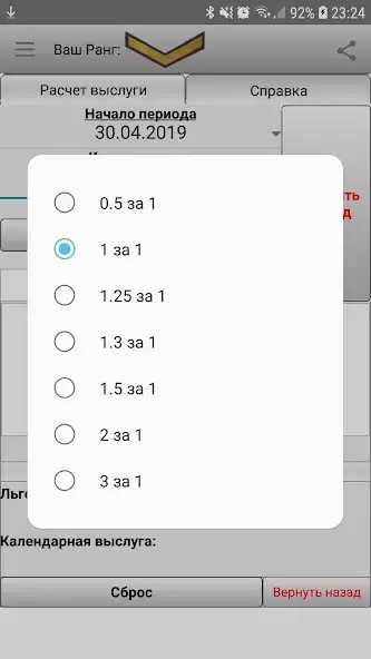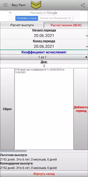 Калькулятор выслуги и пенсии
