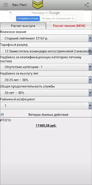 «Калькулятор выслуги и пенсии» — приложение для смартфонов и планшетов на Андроид. Относится к категориям: Инструменты и совместимо со всеми устройствами с Android 4.0 или выше. В Google Play у приложения оценка — из 5 (на основе отзывов пользователей).