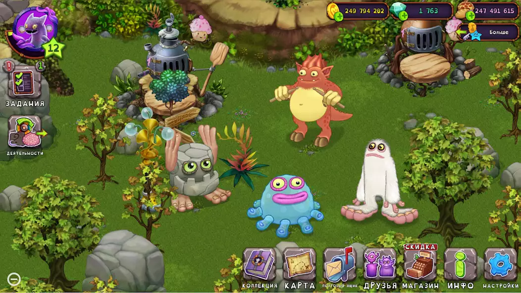Соберите уникальный музыкальный зверинец, в котором каждый монстр — это живой музыкальный инструмент! Исследуйте огромный фантастический мир, в уголках которого проживают бесчисленные сочетания странных и забавных монстров и отовсюду льется музыка. Собирайте и выводите монстров в десятках миров, начиная с острова Растений, поражающего первозданной красотой и пышущего энергией жизни, и заканчивая Перекрестком Магии, излучающим величественное спокойствие. Создайте собственный музыкальный рай, в котором все отражает вас, и демонстрируйте свой стиль, наряжая монстров в костюмы. Присоединяйтесь к десяткам миллионов игроков по всему миру, которым нравятся эти заводные мелодии и удивительные песни, которые из них можно составить. В мире монстров вам ни на секунду не станет скучно.