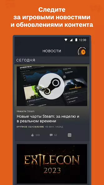 • Персонализированная лента новостей, сформированная на основе вашей библиотеки, с последними новостями, событиями и обновлениями контента прямиком от разработчиков и издателей.