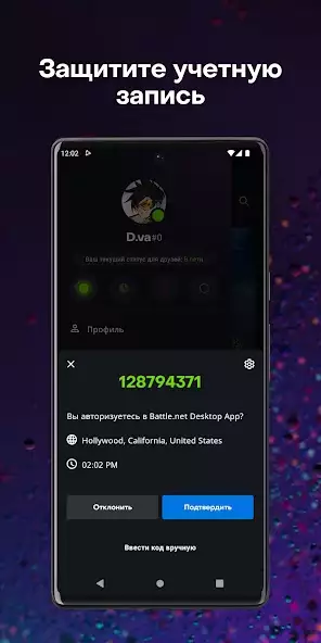 Управляйте учетной записью с помощью меню параметров и защитите ее, прикрепив Battle.net Authenticator. Authenticator обеспечивает безопасность учетной записи благодаря возможности подтвердить или заблокировать любую попытку авторизации одним нажатием клавиши или кнопки в уведомлении.