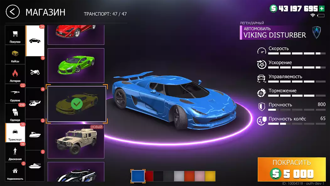 Десятки видов машин от пикапов до люксовых суперкаров. Все самые топовые тачки из мира гонок!
