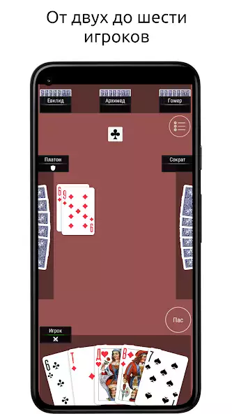 Число игроков - можно выбрать любое количество игроков от 2 до 6. Для игры вшестером возможно вам понадобится двойная колода или колода на 52 карты - все это есть в игре.
