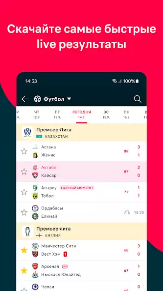 ⭐ Персонализированные избранные: Получайте уведомления о главных новостях, оповещения о голах и настраиваемые напоминания для ваших любимых команд, соревнований или матчей.